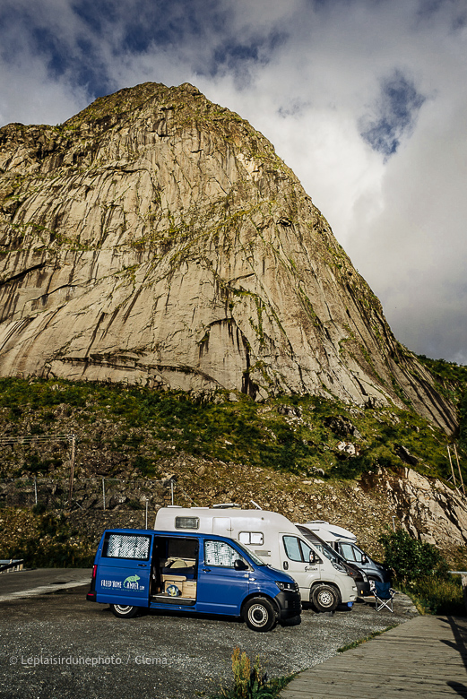 On finit par trouver un recoin assez grand pour garer notre monstre. Nous sommes complètement cuits mais aux anges, heureux comme tout. On met notre nez dehors pour savourer la victoire, sur le port. Ce moment où l’on admire les mouettes au dessus de l’eau danser et chanter, l’horizon et les roches, restera. Quelques photos et une cigarette plus tard, on file sous la couette, l’âme du guerrier qui a gagné la bataille. La chaleur du van nous réconforte et nous nous endormons en paix, au chaud, gagas. C’est parti pour le vrai break du voyage. Nous avions décidé que nous prendrions le temps sur les Lofoten durant une dizaine de jours. Clément est heureux comme un gamin, pense les 1000 et 1 photos en devenir. Et moi aussi, je vais pouvoir lever le pieds sur les kilomètres et me reposer de ce long voyage. Un mois de route, le second objectif est atteint ! Lofoten, nous voilààààààààà !
