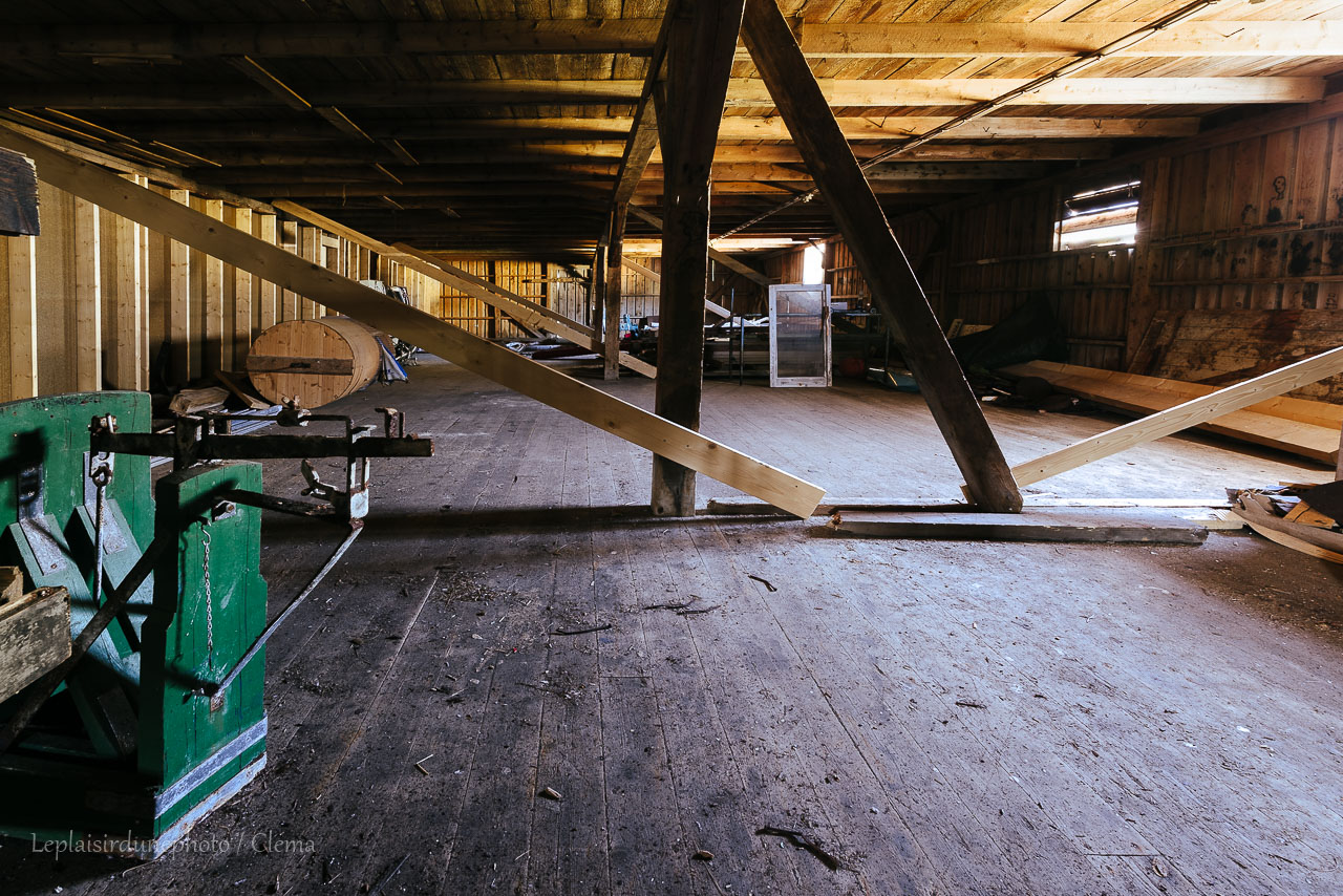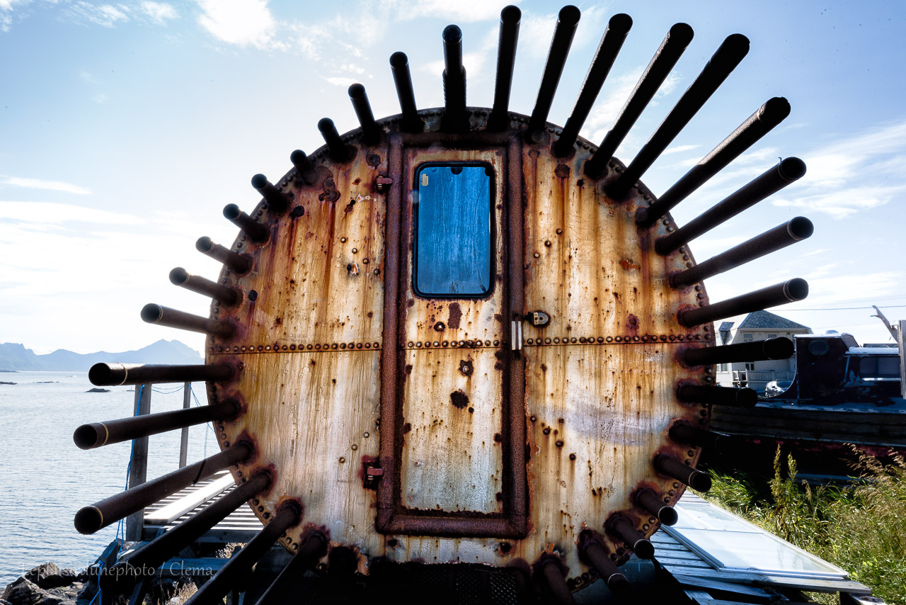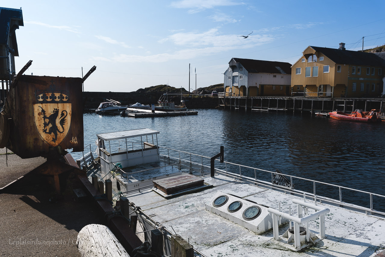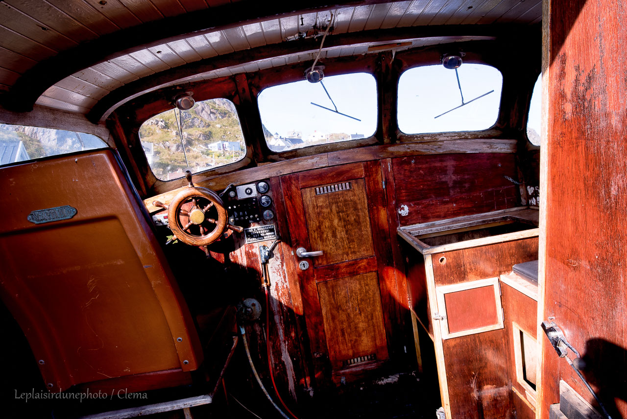 Arrivés à Nyksund, il faut passer un petit pont assez étroit pour accéder au port. Nous garons le van sur le petit parking. La ville se résume à 4 rues autours du port et quelques ruelles qui en découlent. C’est vraiment tout petit. Nous prenons notre sandwich du midi en comprenant que nous allons passer l’après-midi ici facilement. Une fois avalés, nous partons découvrir ces lieux laissés en semie-roue libre. Clément remarque un bâtiment vide, il se faufile dedans. Une sorte de grange à deux étages, très délabrée. Le bois très abîmé laisse passer la lumière qui éclaire de vieux meubles, ce qui fascine le photographe. De mon côté j’arpente les dessous des piloris du port et en fait le tour. On se retrouve un peu plus tard devant un mur tagué et à examiner à travers les fenêtre ce qui semble être un ancien atelier d’art.