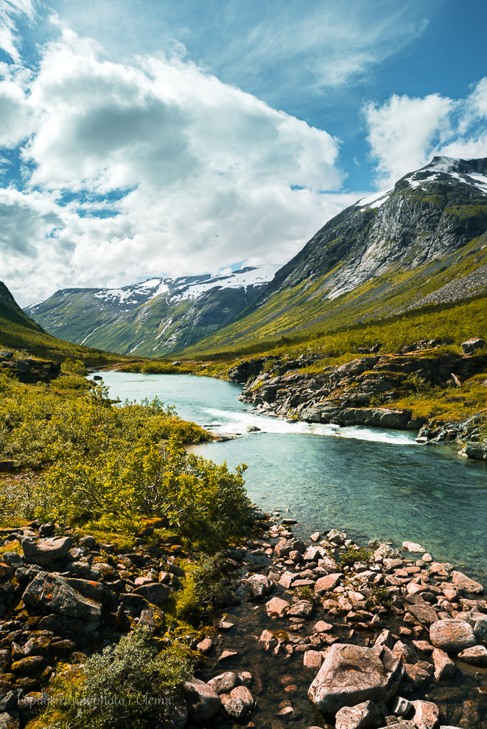 Aujourd’hui est vraiment une belle route. Peut-être même la plus belle. C’est bien plus tard, que je comprends qu’il s’agit de Trollstigen (littéralement « l’échelle des Trolls »), d’où cet afflux de touristes. Nous passons à côté d’un autre point de vue, hyper sophistiqué, très aménagé, limite un centre commercial ! Et oui, nous ne le savons pas mais la route des Trolls est juste derrière, et ce point de vue si aménagé donne directement dessus et la vue y est semble-t-il vertigineuse. Mais comme on ne le sait pas, on ne comprend pas.